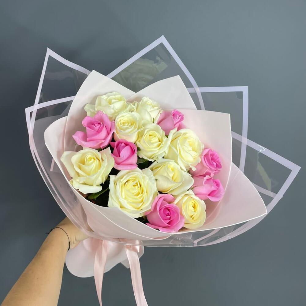 Очаровательный нежный букет из нежных роз